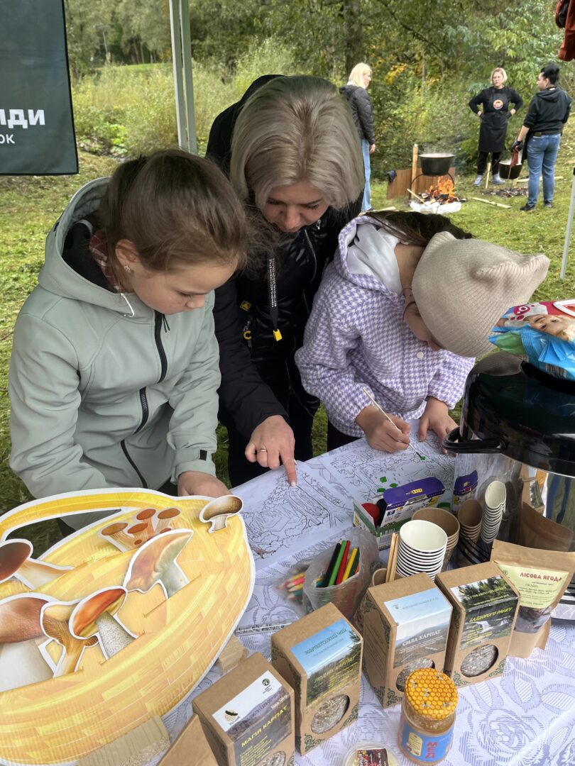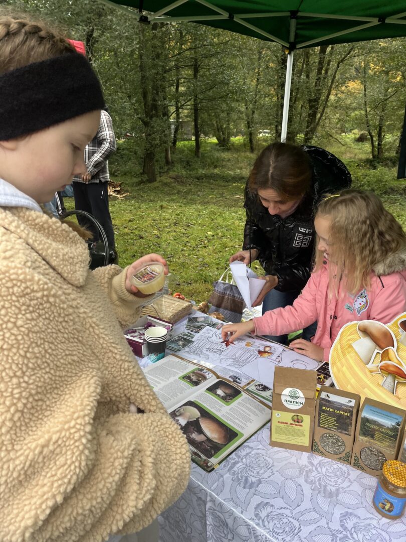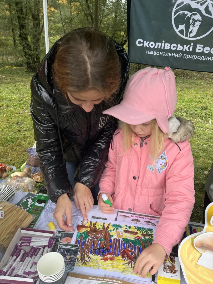 Фахівці Парку також взяли участь в зустрічі та провели еко-освітній майстер-клас на осінню тематику, діти захоплено розглядали підготовані фахівцями матеріали і зображення про гриби та розпізнавали гриби на їстівні та отруйні, а також розфарбовували осінні малюнки.